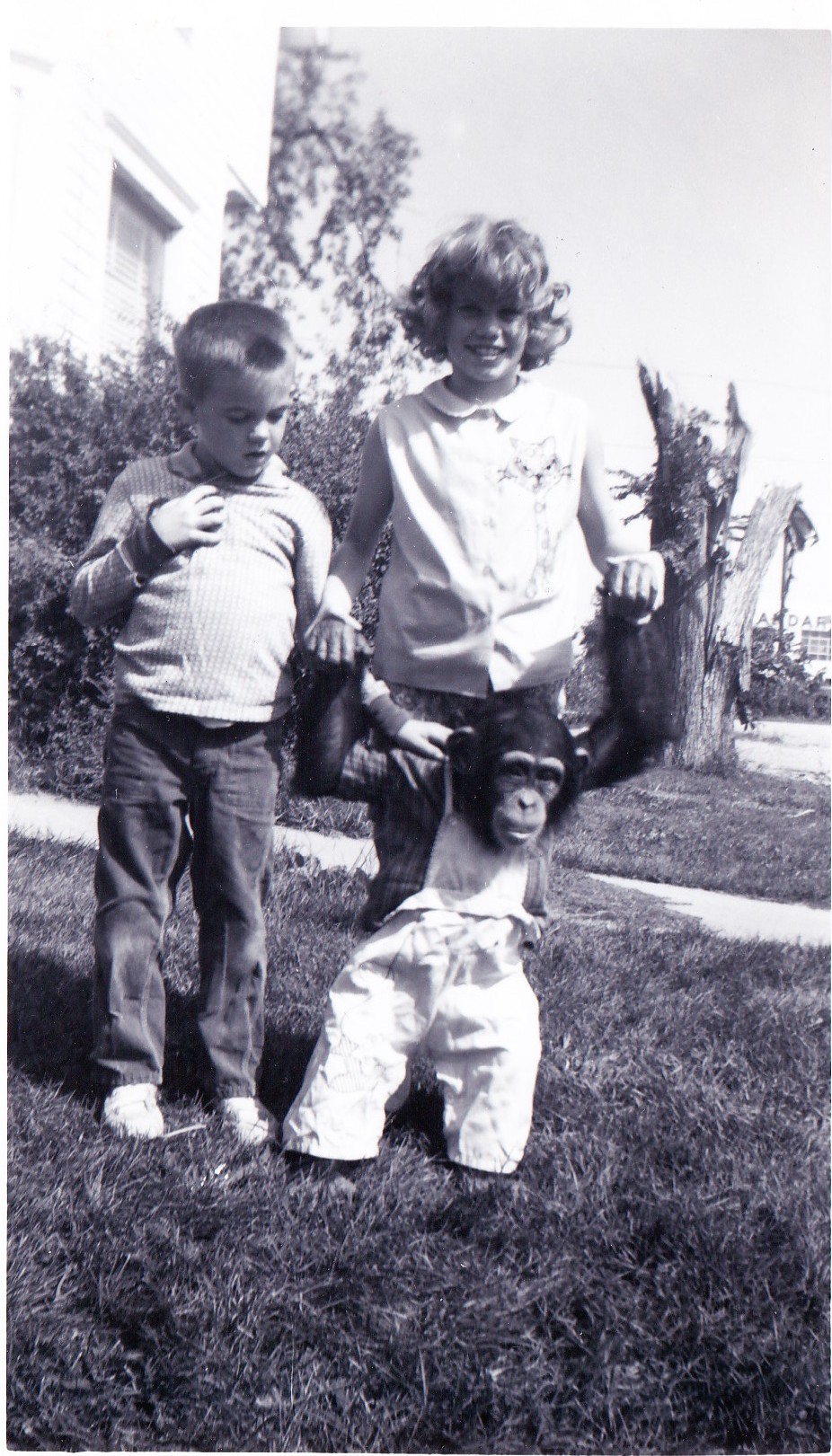 The photo below is my husband, with his sister, and Skipper. Skipper is the chimp. 🙂